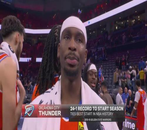 再讲一个数据,本赛季雷霆队净胜分达到437分,创下 NBA 历史上赛季前 25 场比赛的最大净胜分差纪录。